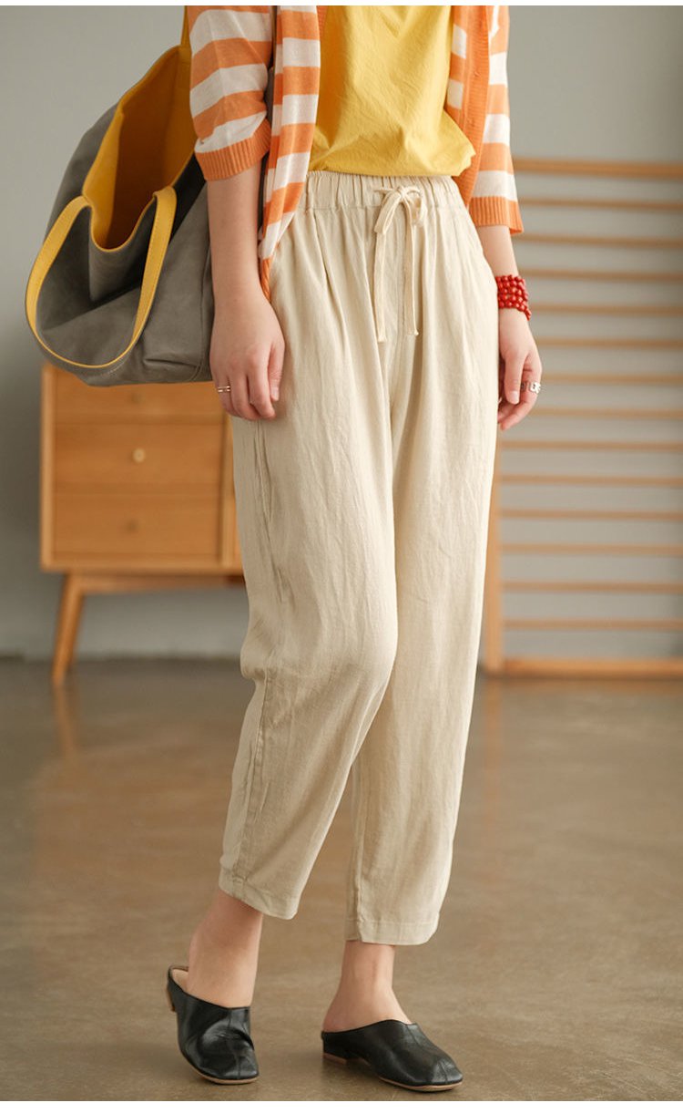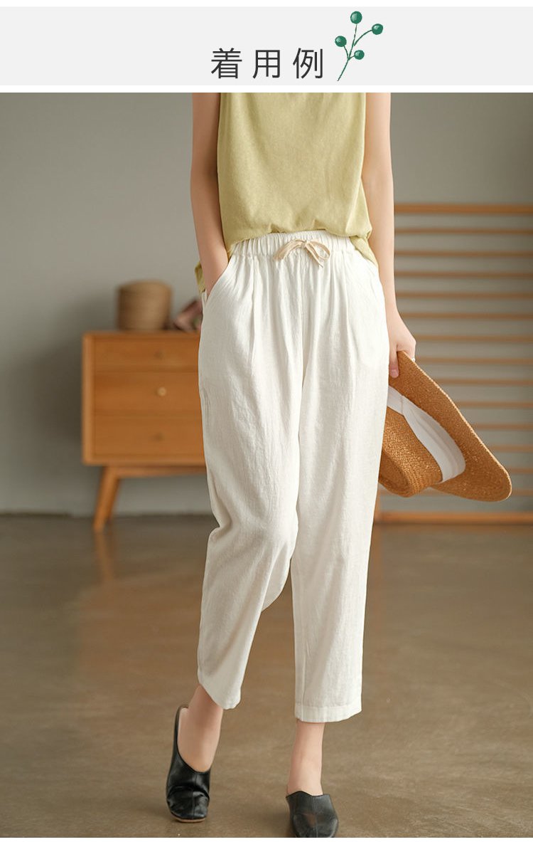 【天皇御用の富士吉田百年工房製】夏用の無地の綿麻サルエルパンツ