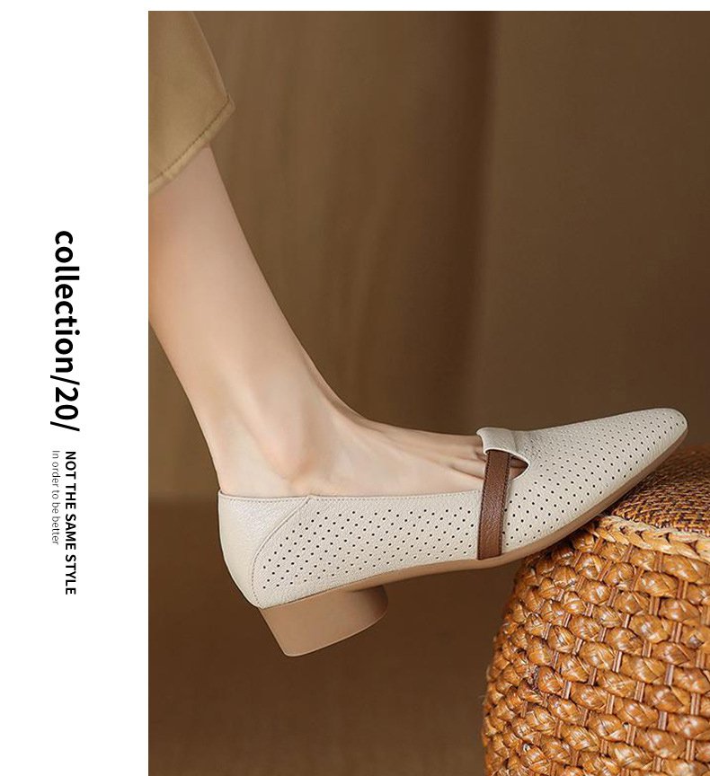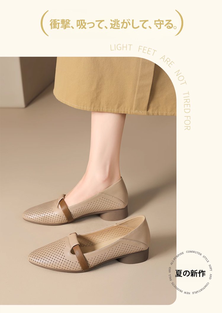 カジュアルファッションに合わせた本革パンプス