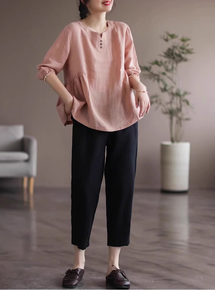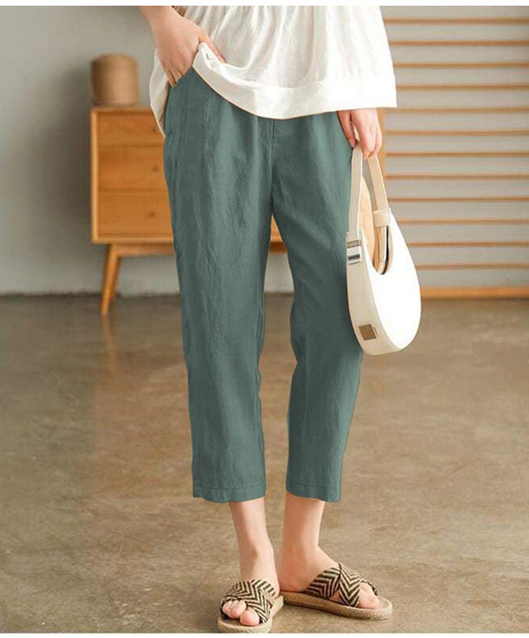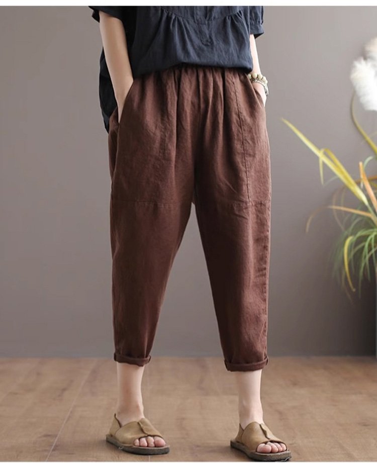 夏のカジュアルコーデに最適な綿麻サルエルパンツ