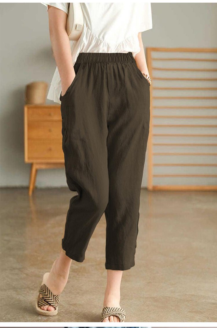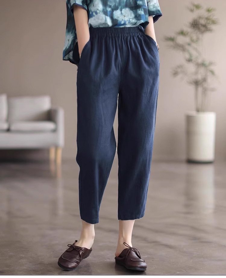 【天皇御用の富士吉田百年工房製】夏用の無地の綿麻サルエルパンツ